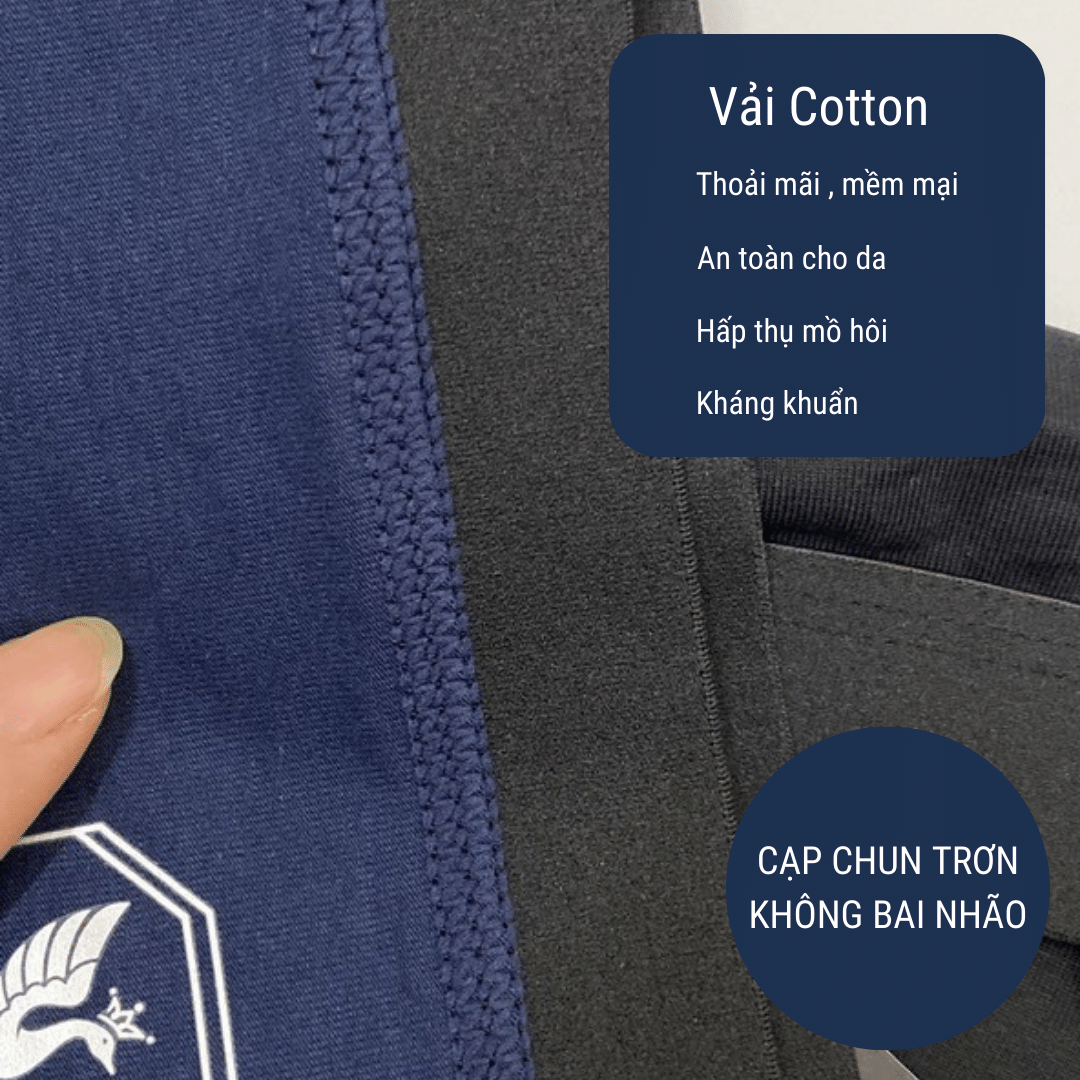 Vải Cotton mềm mại, thoáng khí và thấm hút mồ hôi tốt. Điều này giúp giữ cho vùng kín khô ráo và thoải mái trong suốt cả